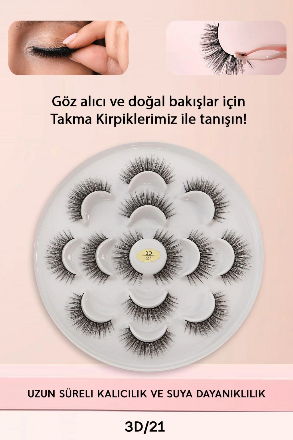 7 Çift Doğal İpek Takma Kirpik 3d 21 Hacimli