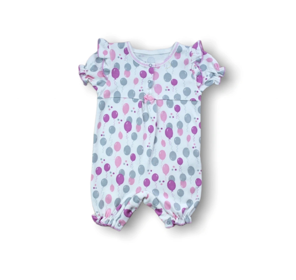 9-12 12-18 18-24 Ay Cemre Uçan Balon Baskılı Kısa Kollu Kız Bebek Tulumu