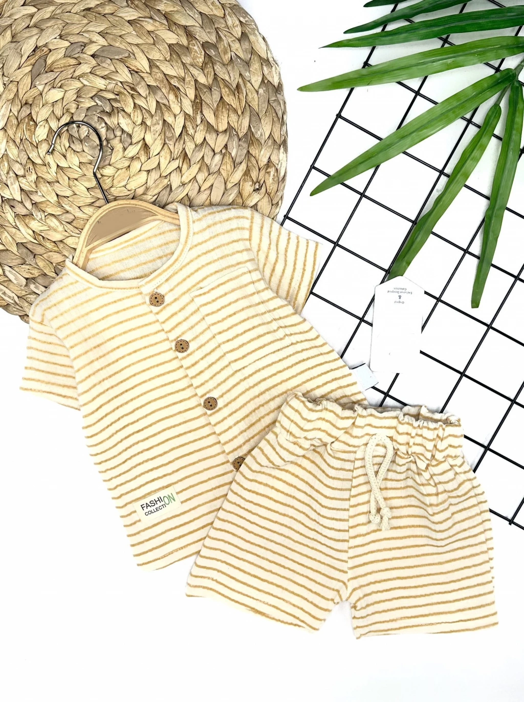 9-12-18-24 Ay Düğme Detaylı Çizgili Müslin Kumaş Yazlık 2li Erkek Bebek Takımı