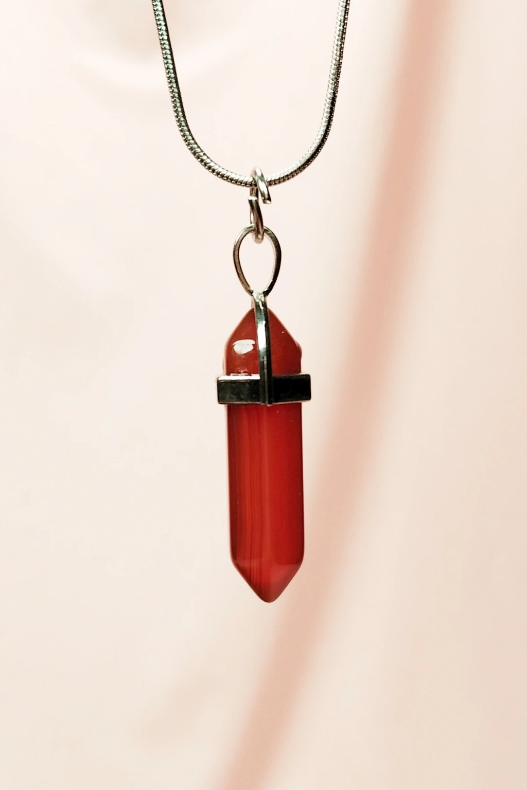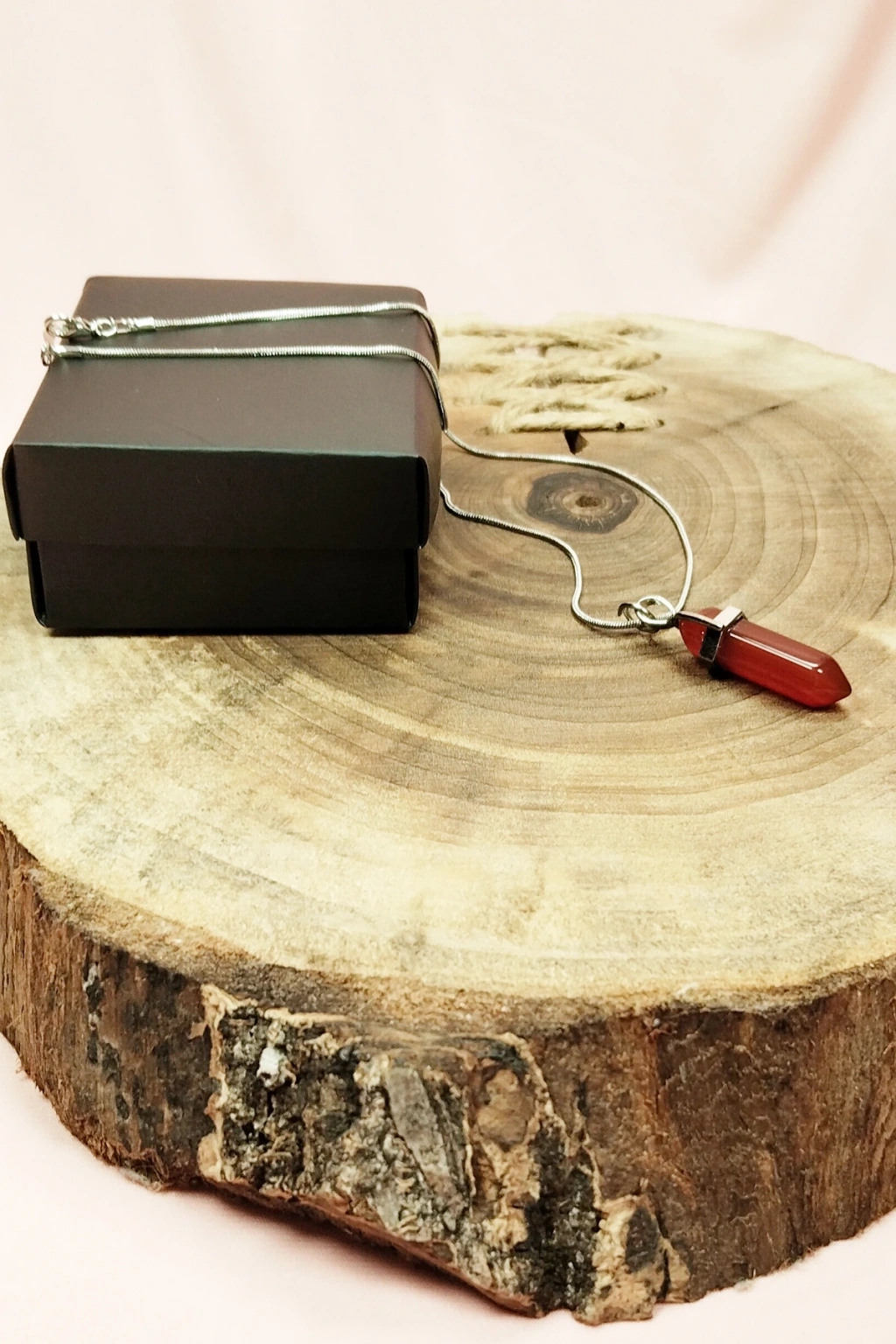 Pembe Akit Doğal Taşı Zincirli El Yapımı Tasarımlı Kolye Uç: 3,5 cm Zincir: 20 cm Kutulu