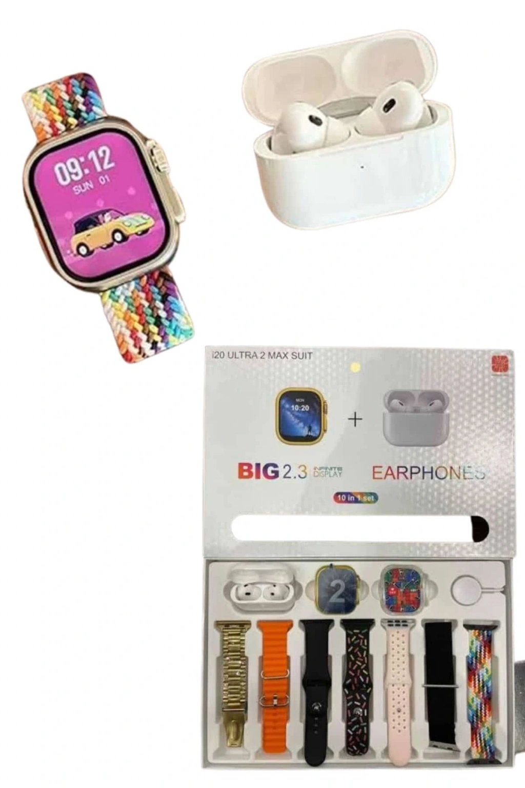 Akıllı Saat ve Air Pro Kulaklık 7 Kordonlu Çok Fonksiyonlu İkili Set