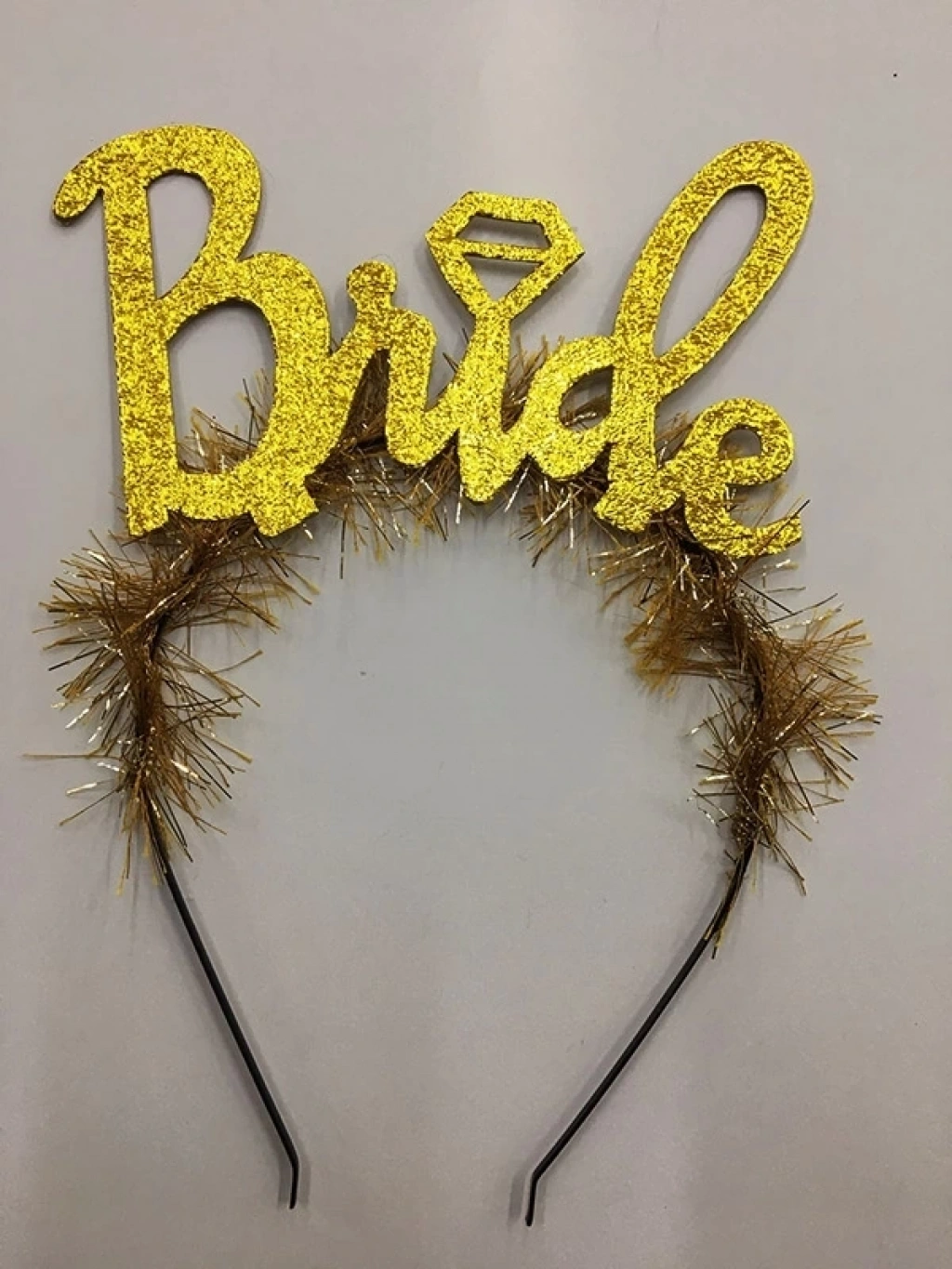 Altın Renk Bekarlığa Veda İtalik Yazı Alyanslı Bride Taç
