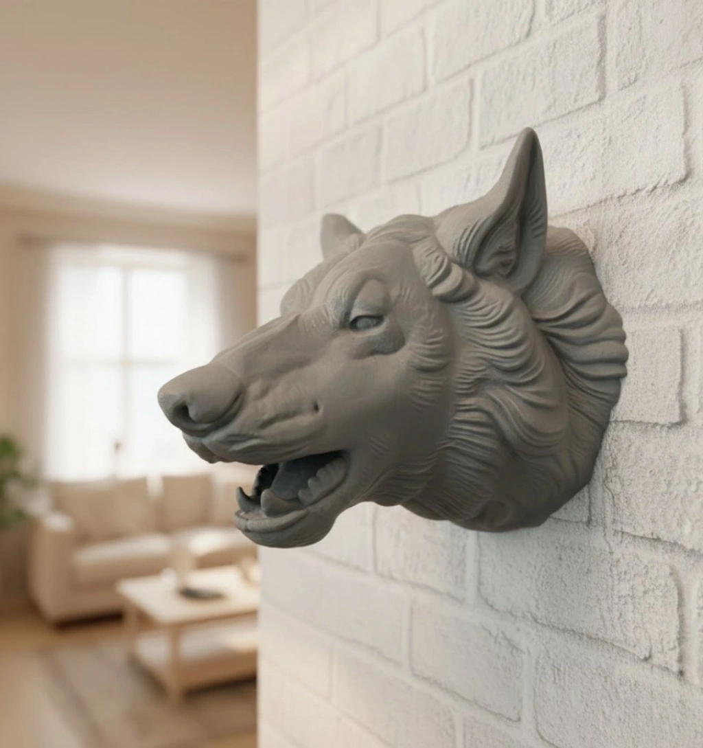 Asılabilir Gri Kurt Heykeli Ev Ofis Duvar Süslemesi Dekoratif