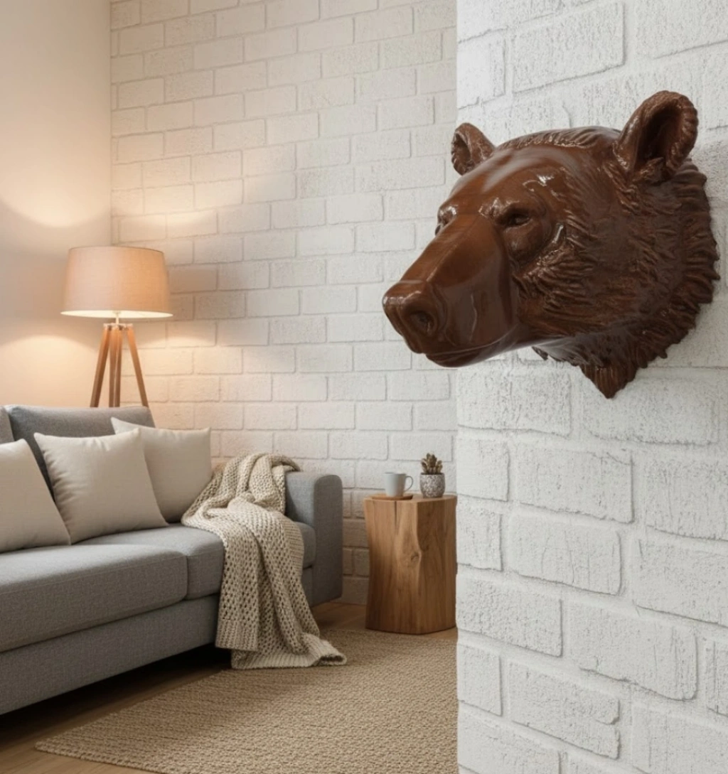 Ayı Başı Duvar Dekoru Modern Asılabilir Heykel 25x19 cm