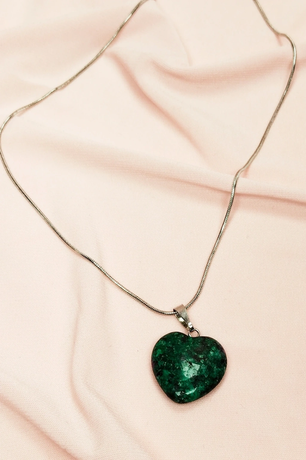 Yeşil Kuvars Doğal Taşı Zincirli El Yapımı Tasarımlı Kolye Uç: 3,5 cm Zincir: 20 cm Kutulu
