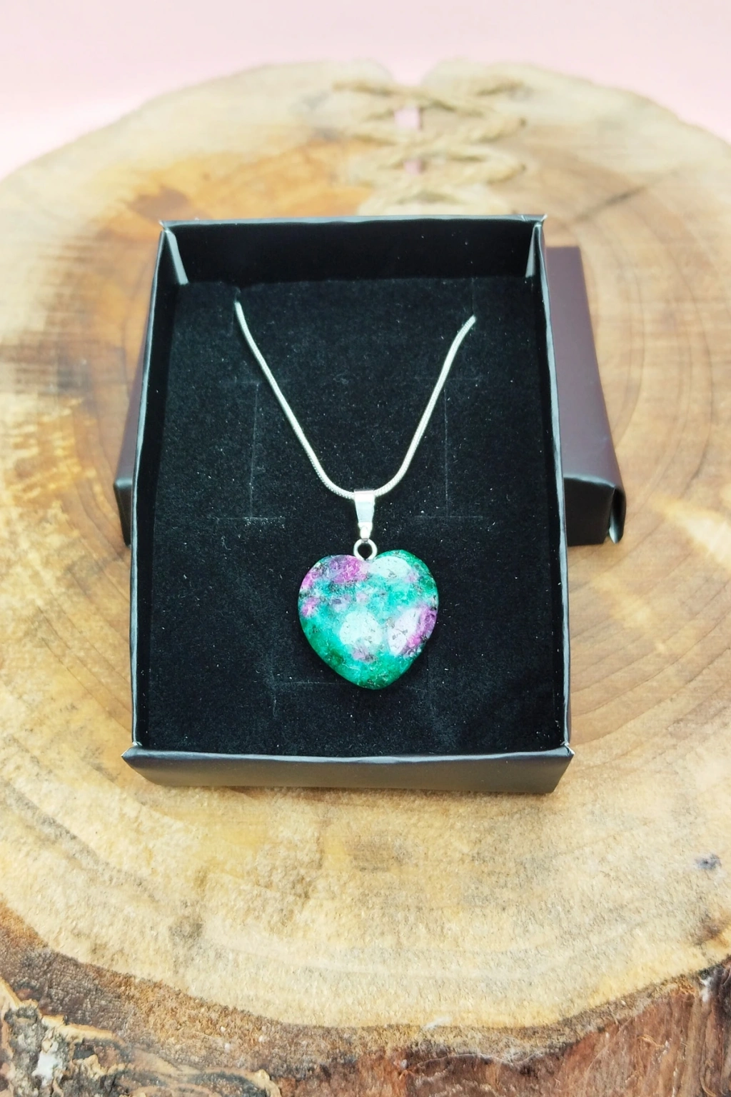 Pembe Akit Doğal Taşı Zincirli El Yapımı Tasarımlı Kolye Uç: 3,5 cm Zincir: 20 cm Kutulu