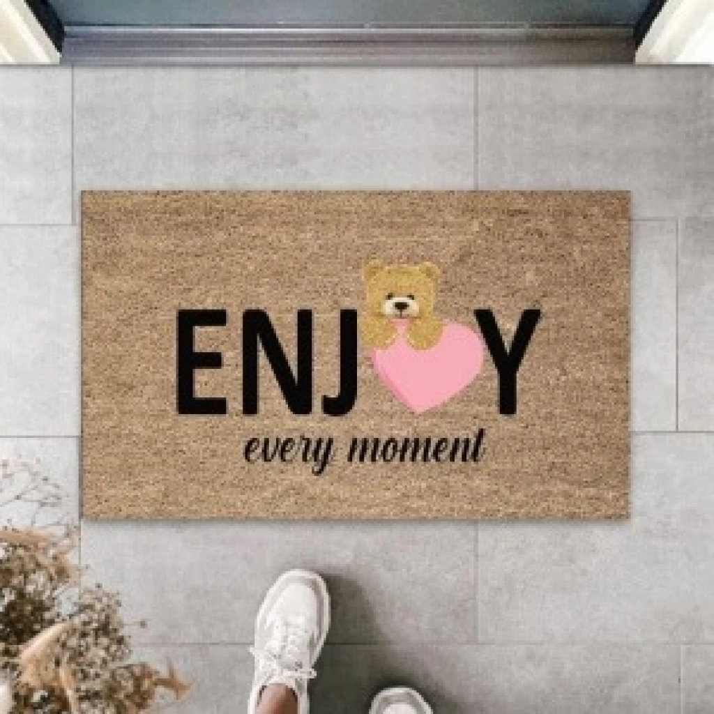 Bej Kapı Önü Paspası Enjoy Ever Moment Ayıcık Desen K-3351