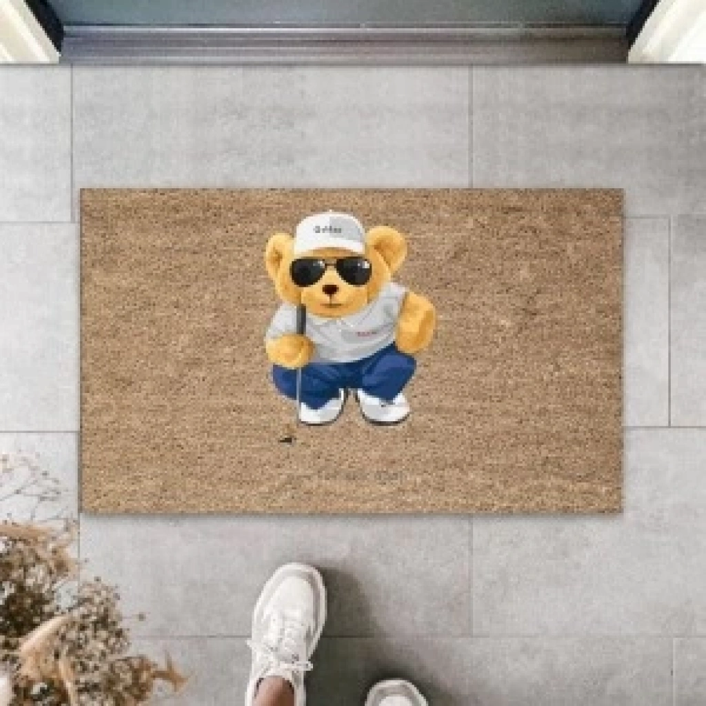 Bej Kapı Önü Paspası Golfer Ayıcık Desen K-3330