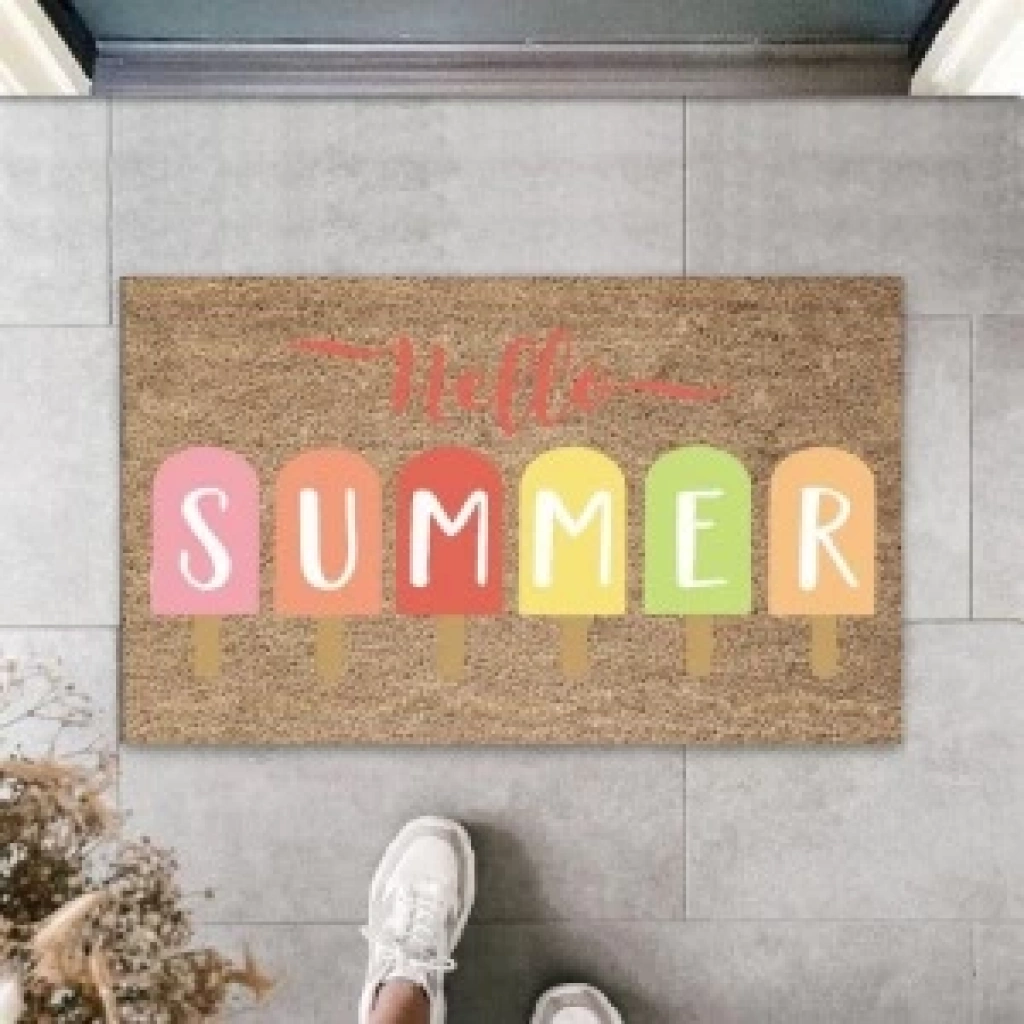 Bej Kapı Önü Paspası Hello Summer Dondurma Desen K-3275