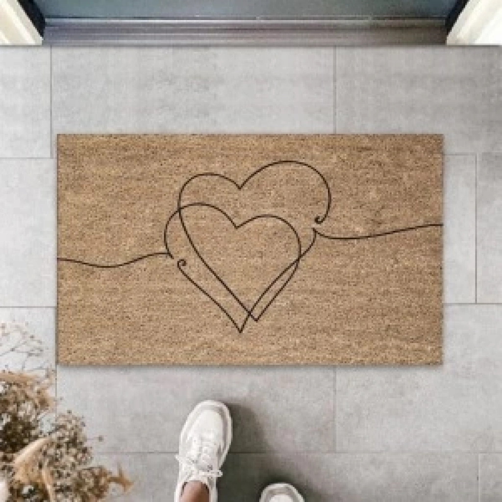Kapı Önü Paspası Kişiye Özel Yazı Yazılır Koko Model Kalp Çiçek Desenli Pk-1515
