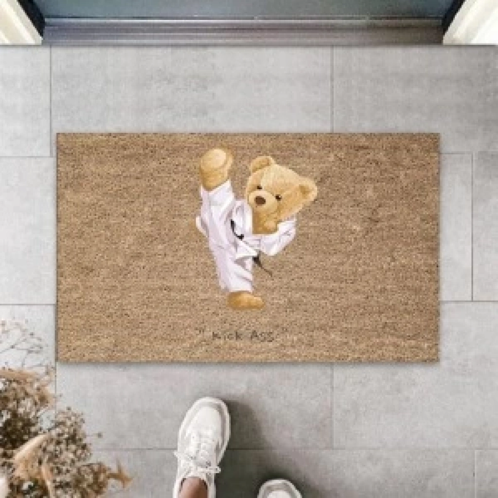 Bej Kapı Önü Paspası Kick Ass Ayıcık Desen K-3317