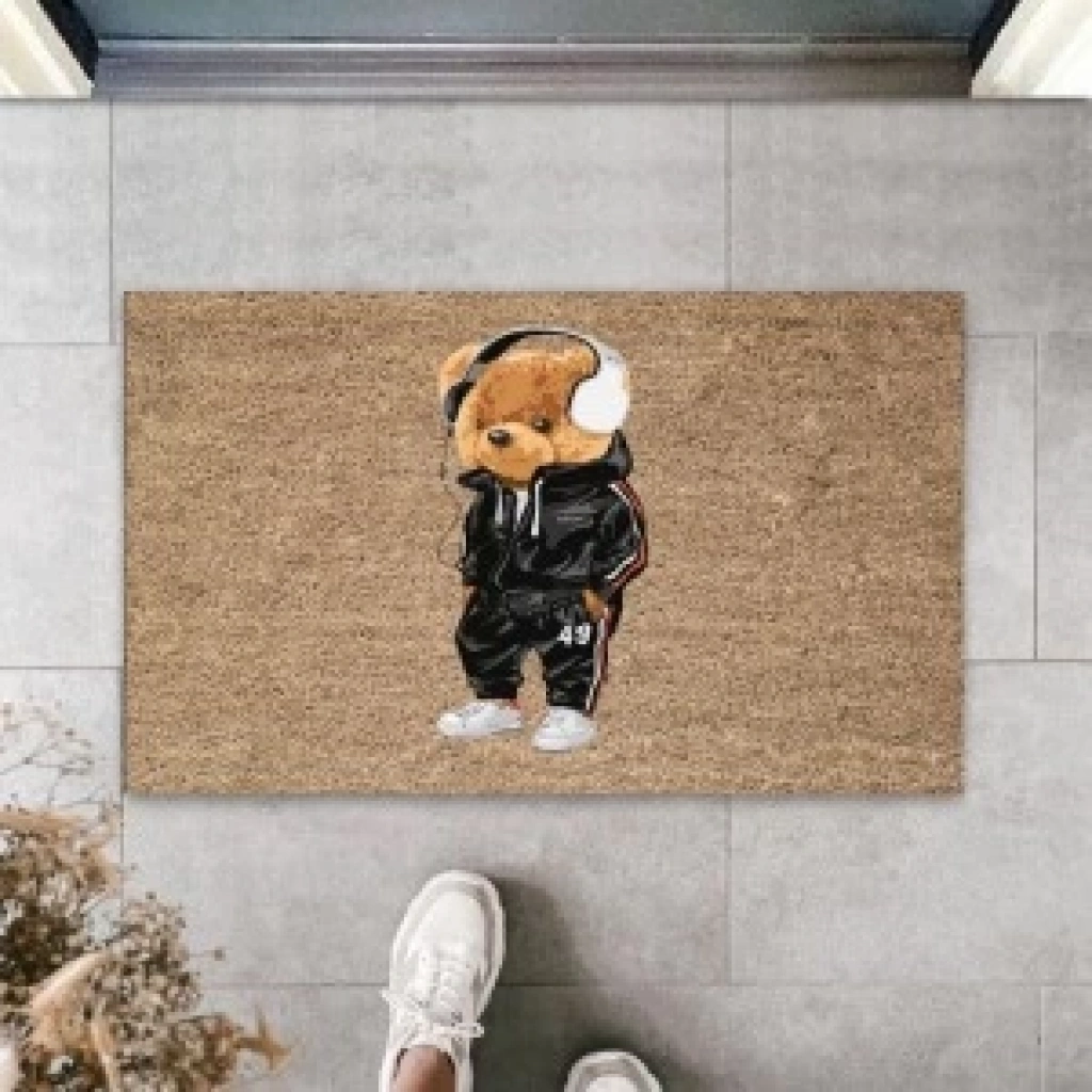 Bej Kapı Önü Paspası Kulaklıklı Ayıcık Desen K-3347