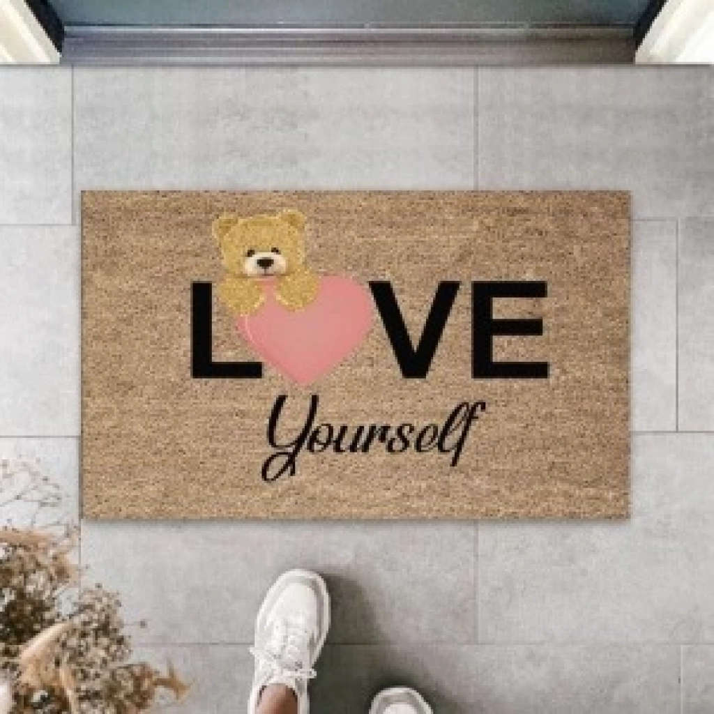 Bej Kapı Önü Paspası Love Yourself Ayıcık Desen K-3327