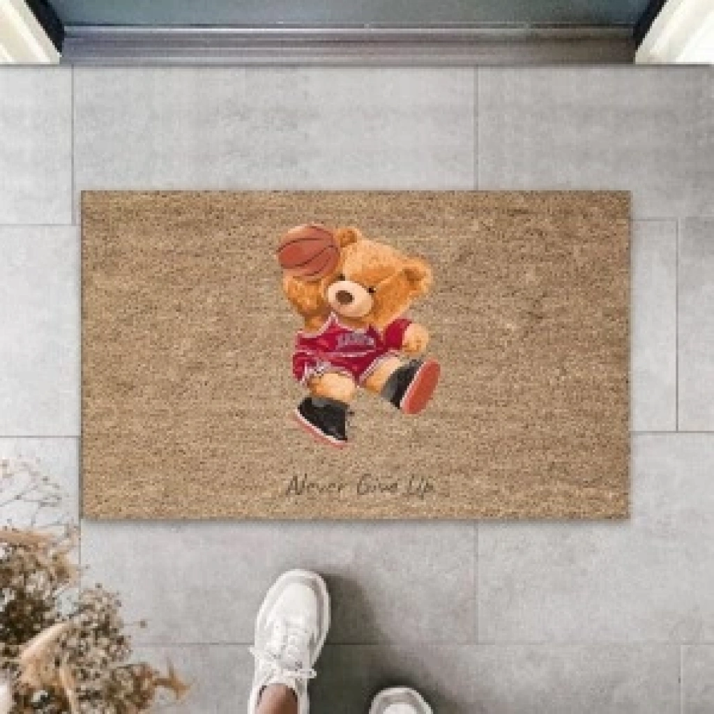 Bej Kapı Önü Paspası Never Give Up Ayıcık Desen K-3315