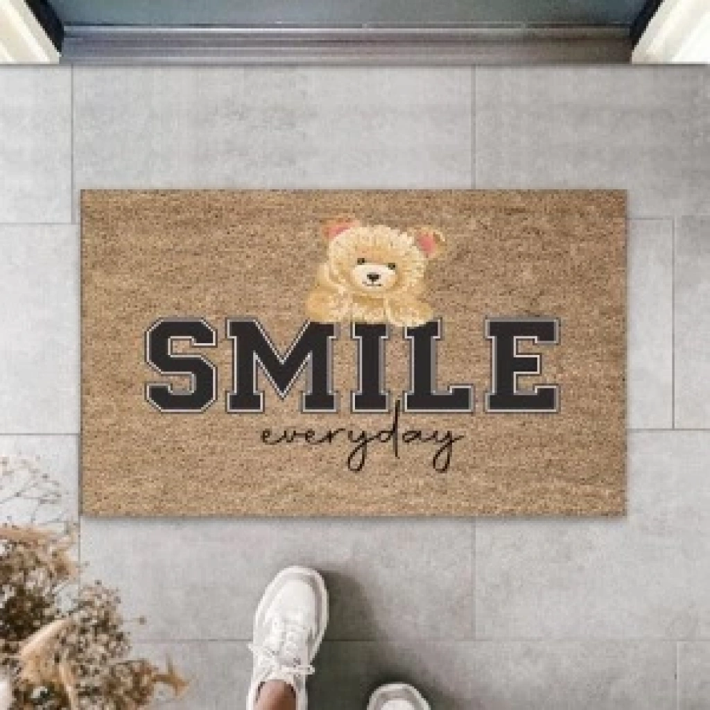 Bej Kapı Önü Paspası Smile Everyday Ayıcık Desen K-3360