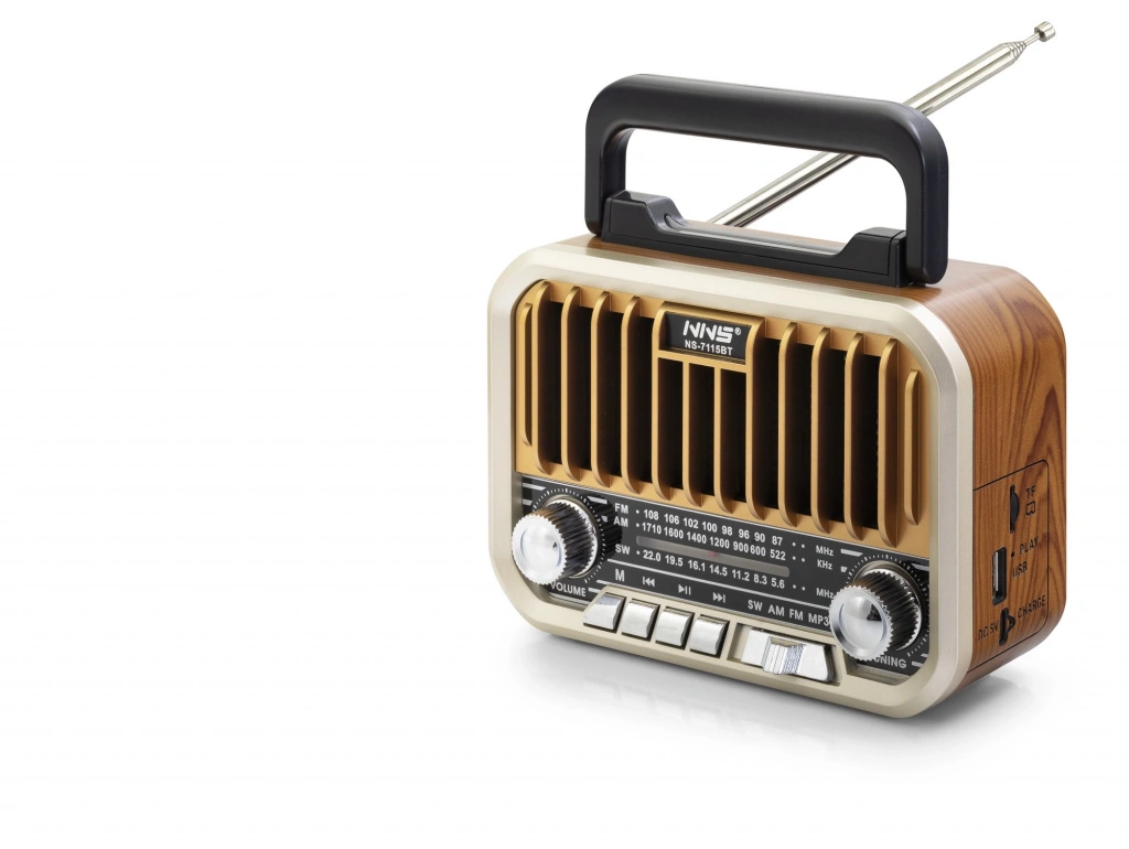 Geniş Açıklama NS7115BT, Klasik Radyo Zarafetini Modern Dijital Özelliklerle Harmanlayan, 16.5 Cm Genişliğinde Kompakt Bir Nostaljik Ses Sistemidir. Altın Rengi (gold) Ön Izgara Detayları Ve Ahşap Dokulu Retro Kasasıyla Bulunduğu Her Ortama Vintage Bir Şıklık Katarken, Güncel Ses Teknolojisiyle Yüksek Kaliteli Müzik Deneyimi Sunar.