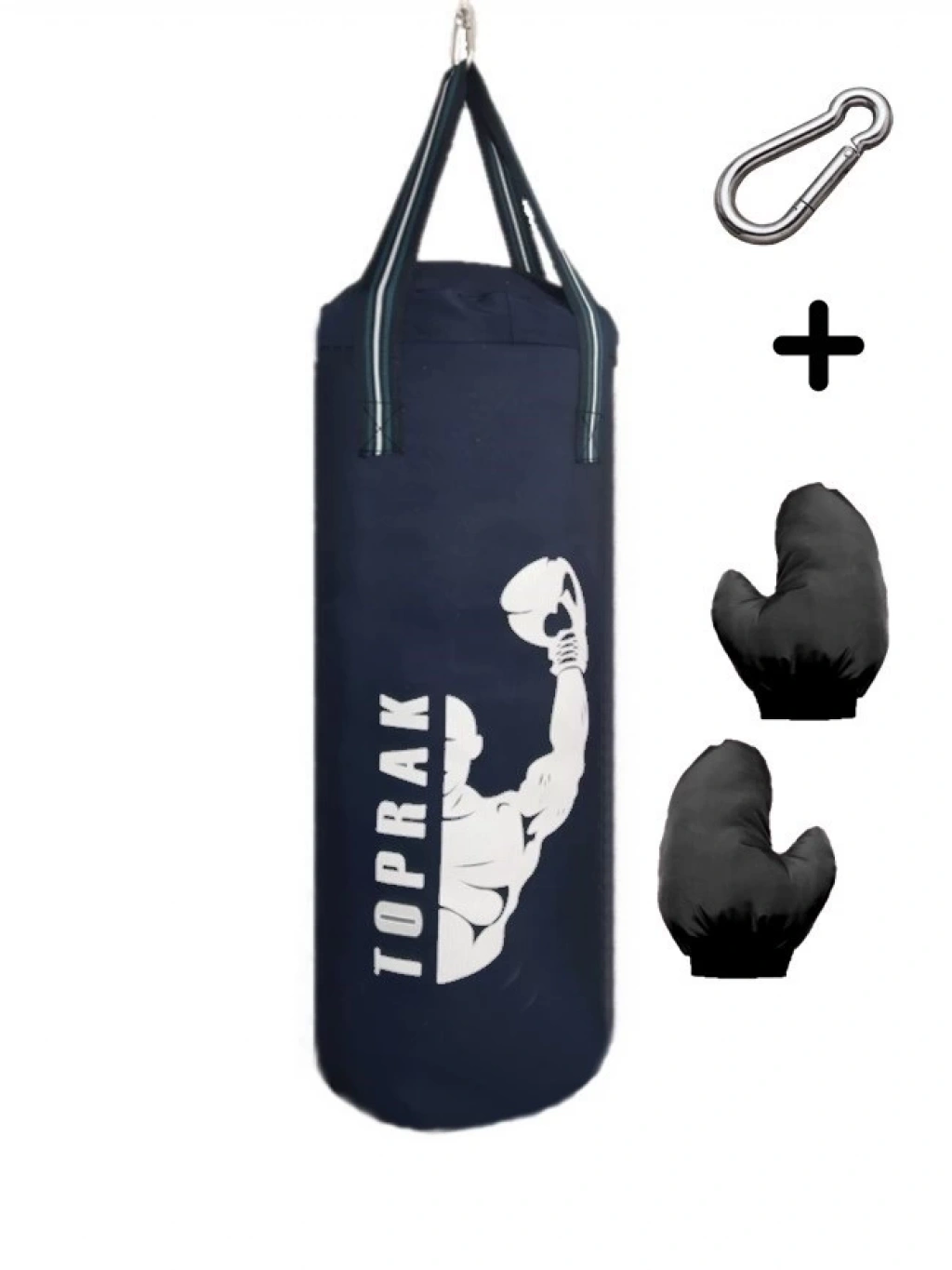 Boks Torbası Eldiven, Karabina Ve Bandaj Hediyeli İçi Dolu 60x22cm Lacivert