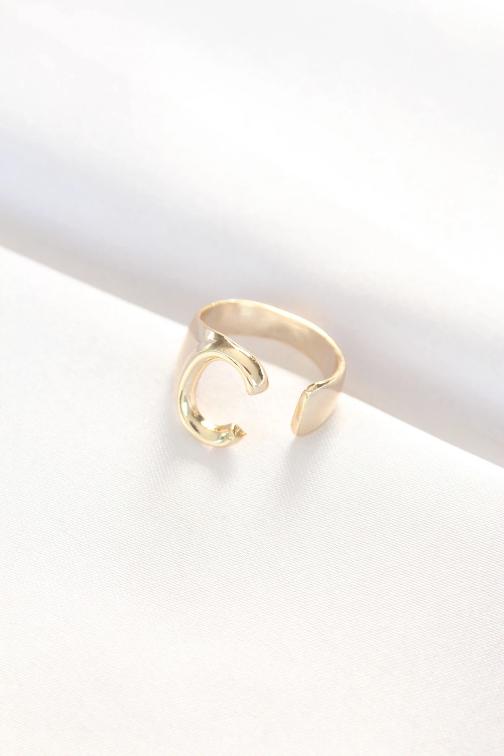 C Harfli Altın Renk Ayarlanabilir Yüzük - TJ-BYK3150