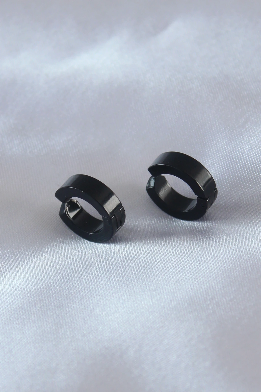 Çelik Siyah Renk Sıkıştırmalı Erkek Küpe