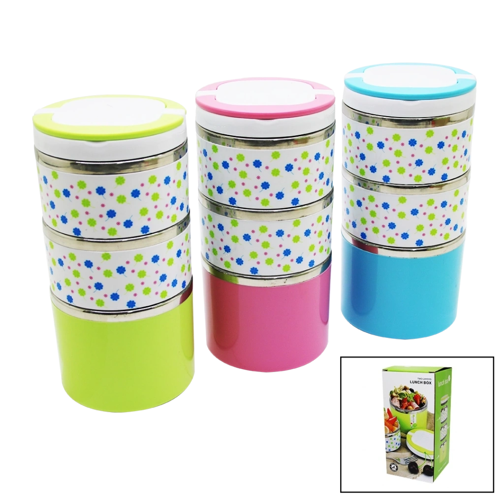 ÇİÇEKLİ 3LÜ SEFER TASI - SAKLAMA KABI RENKLİ 1.26LT (5047)