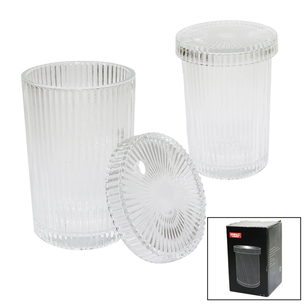 12 PCS TAKIM YUVARLAK CAM BAHARATLIK - TUZLUK BAMBU KAPAKLI (5047)