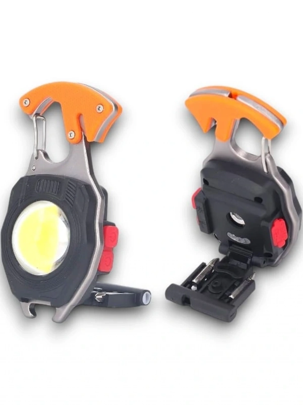 Şarjlı COB LED Anahtarlık Fener – 4 Modlu, Manyetik ve Katlanabilir Standlı