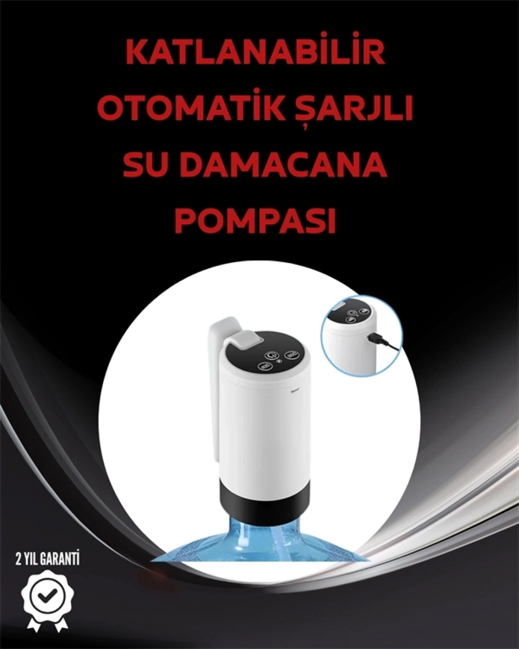 Otomatik Damacana Su Pompası | 40-80 Saniye Zaman Ayarlı | %90 Açılabilir Hijyenik Tasarım | Şarjlı ve Portatif