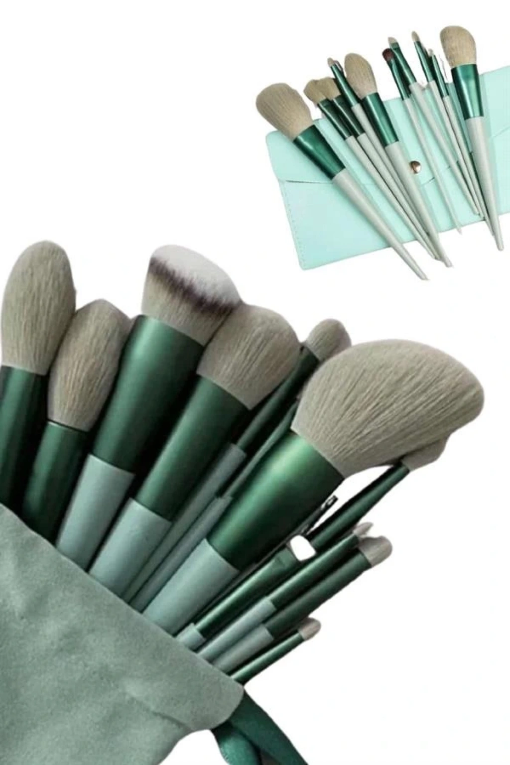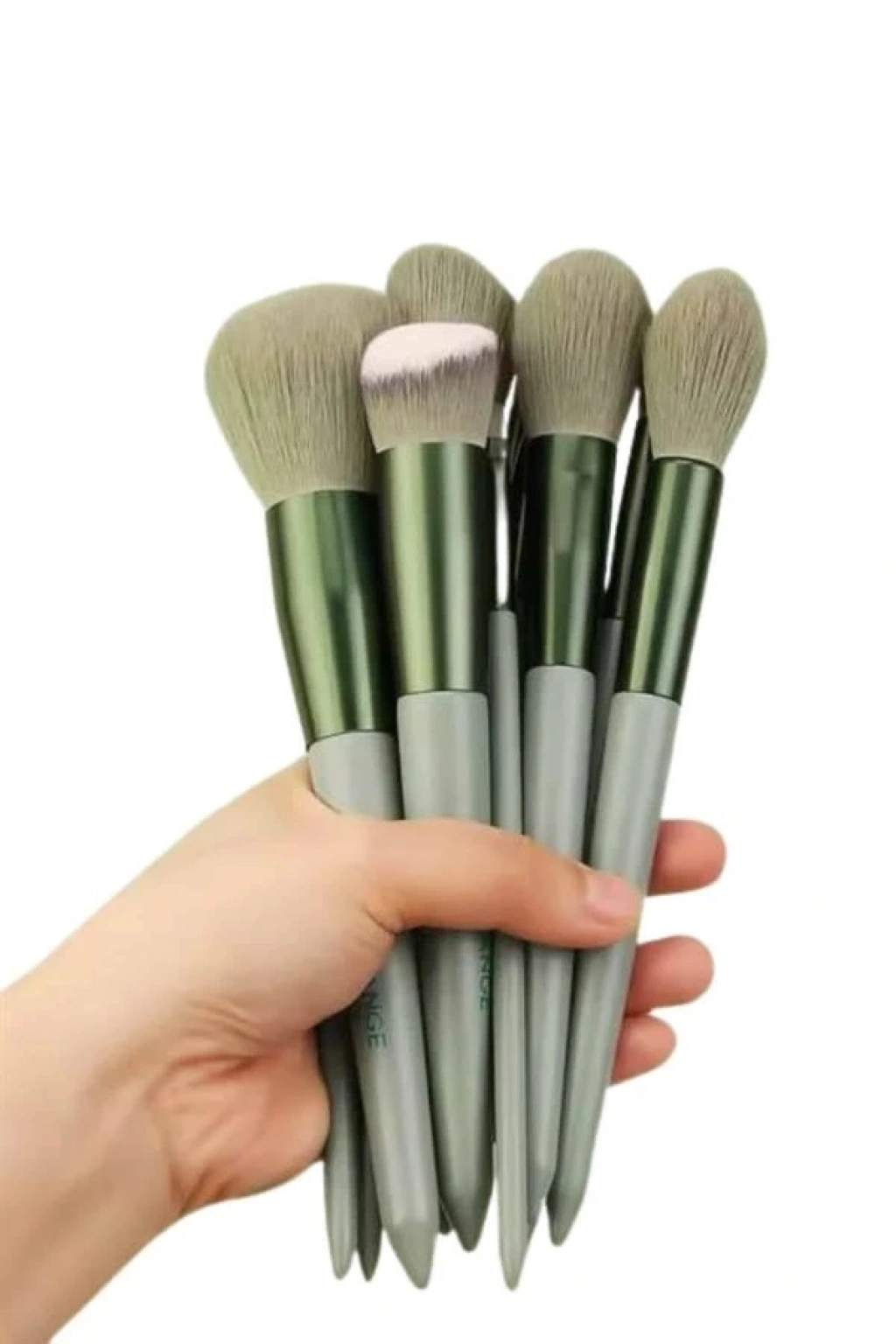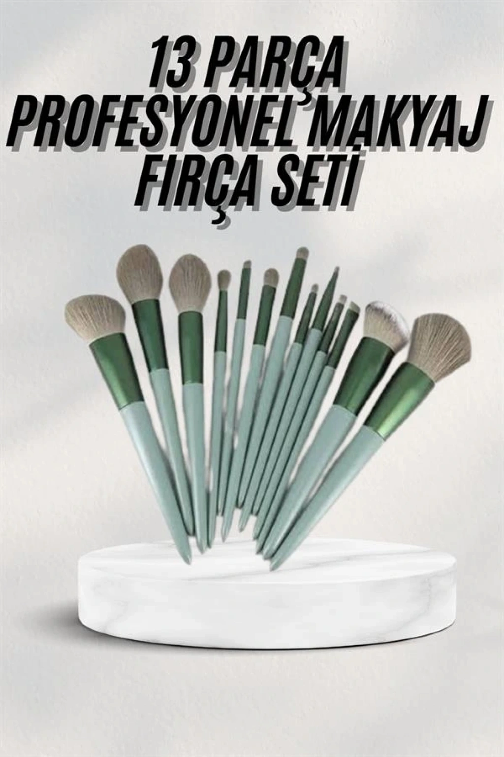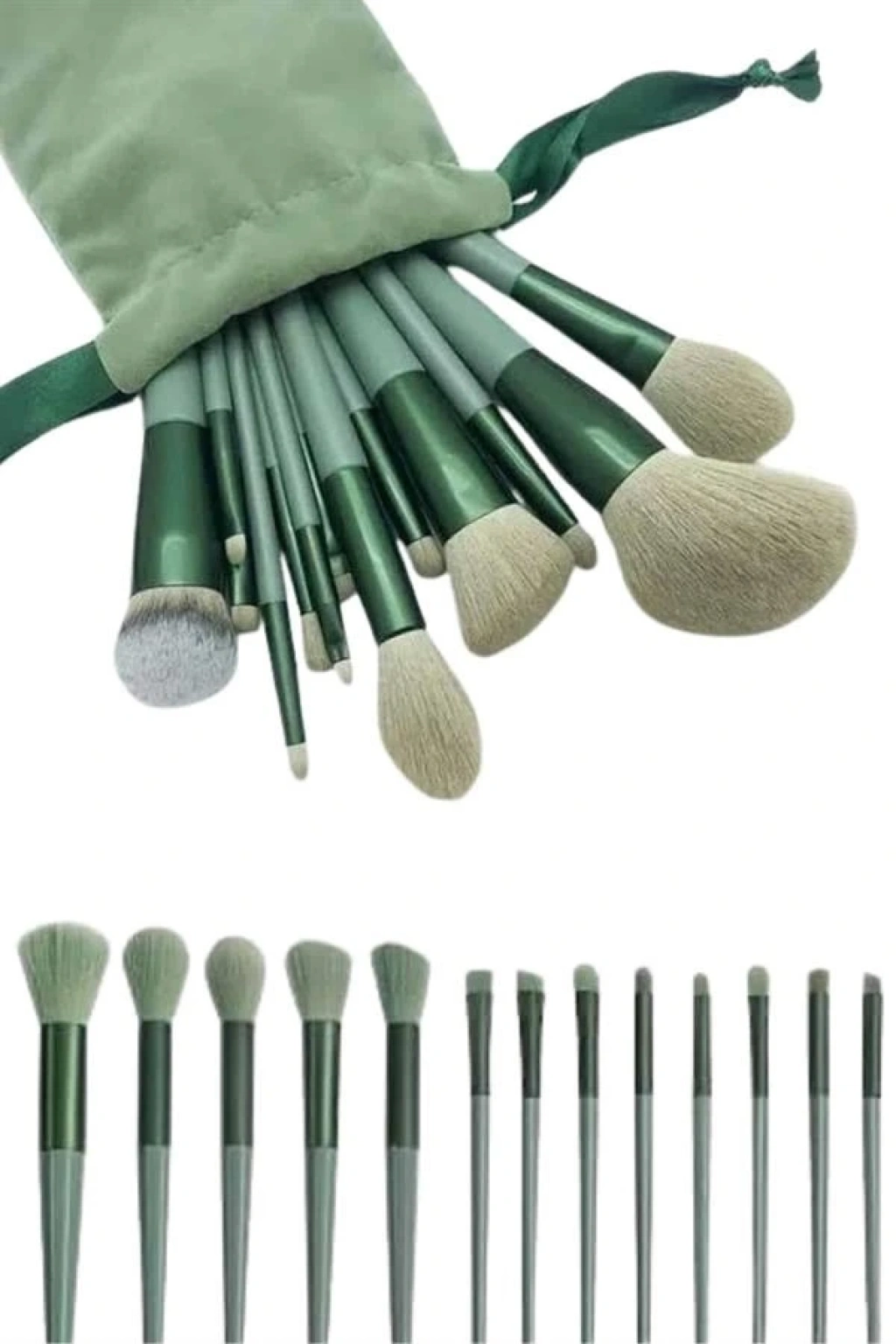 Makyaj Fırça Seti Yeşil 13 Parça Fondöten Fırçası Allık Fırçası Far Fırçası
