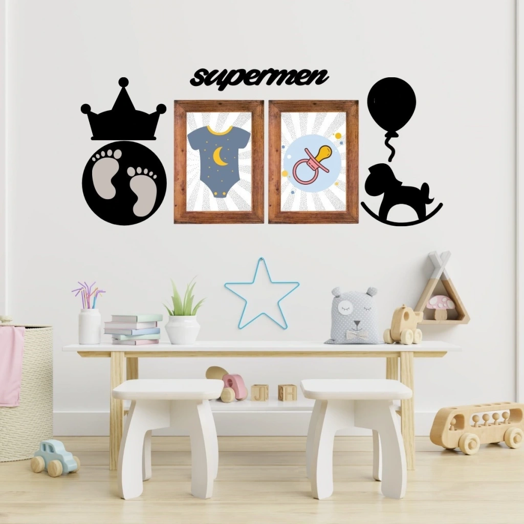 Supermen Dekoratif Duvar Süsü Tablo Aksesuar Ahşap Tasarım Hediye Pano Seti