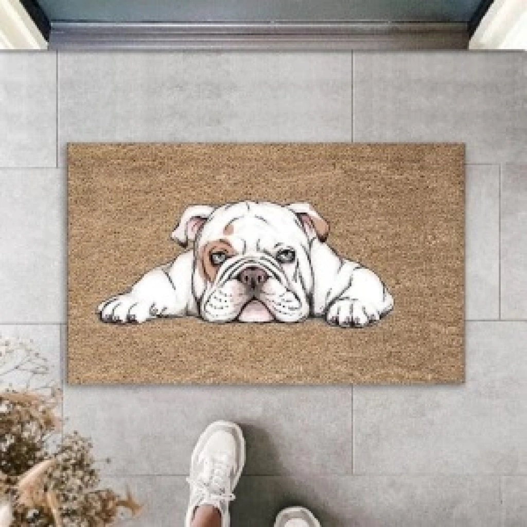 Dekoratif Dijital Baskı Bej Köpek Dış Mekan Paspas K-3005