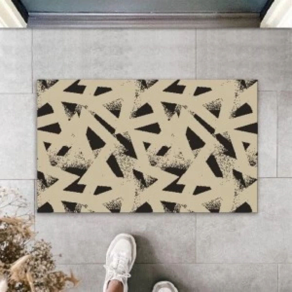 Dekoratif Dijital Baskı Kahverengi Geometrik Dış Mekan Paspas K-2096