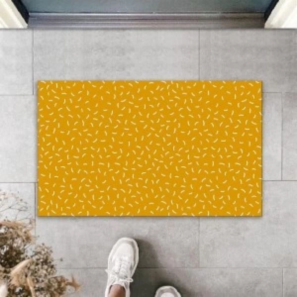 Dekoratif Dijital Baskı Sarı Çizgi Dış Mekan Paspas K-2103