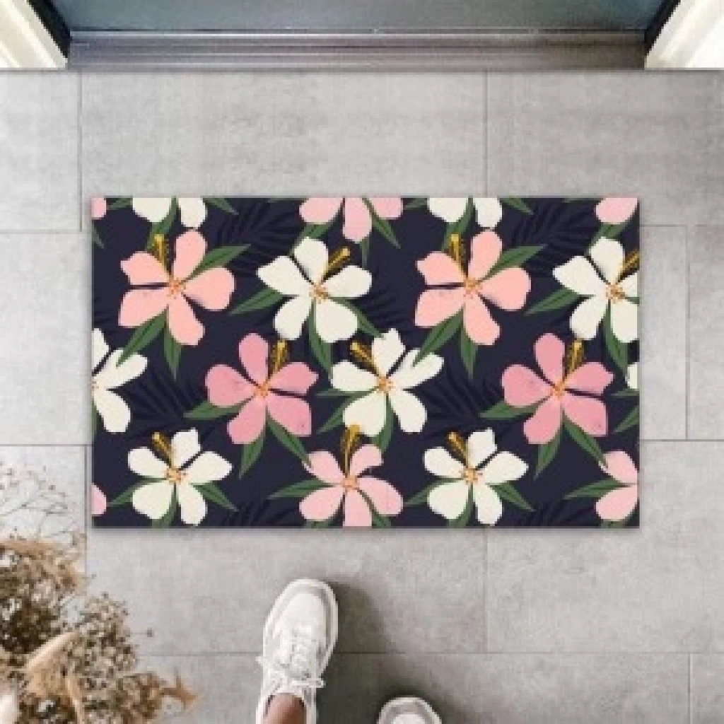 Dekoratif Dijital Baskı Siyah-pembe Çiçek Dış Mekan Paspas K-2102