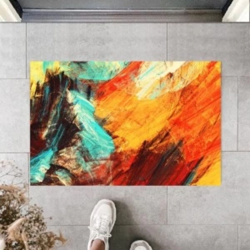 Dekoratif Dijital Modern Çizim Turuncu Kapı Paspası Dış Mekan Paspas K-2115