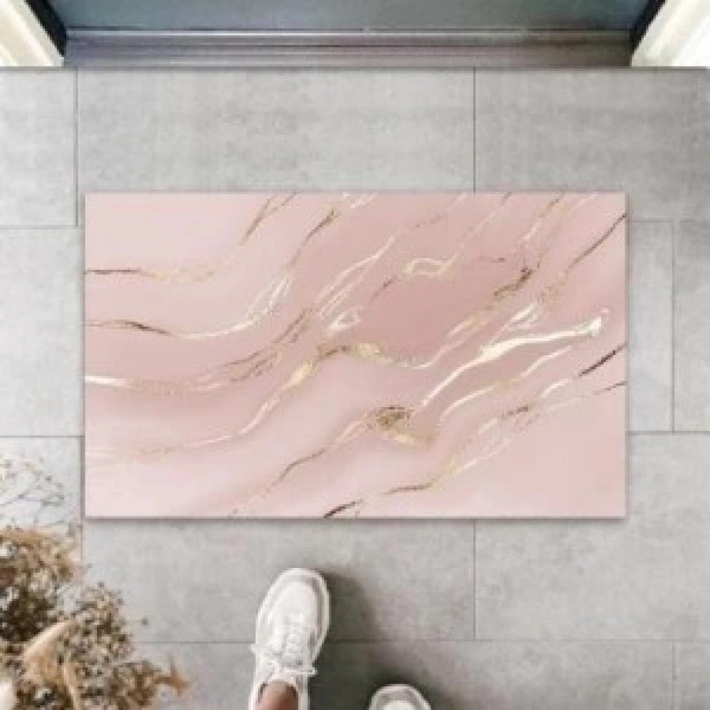 Dekoratif Dijital Modern Dalgalı Açık Pembe Kapı Paspası Dış Mekan Paspas K-3113