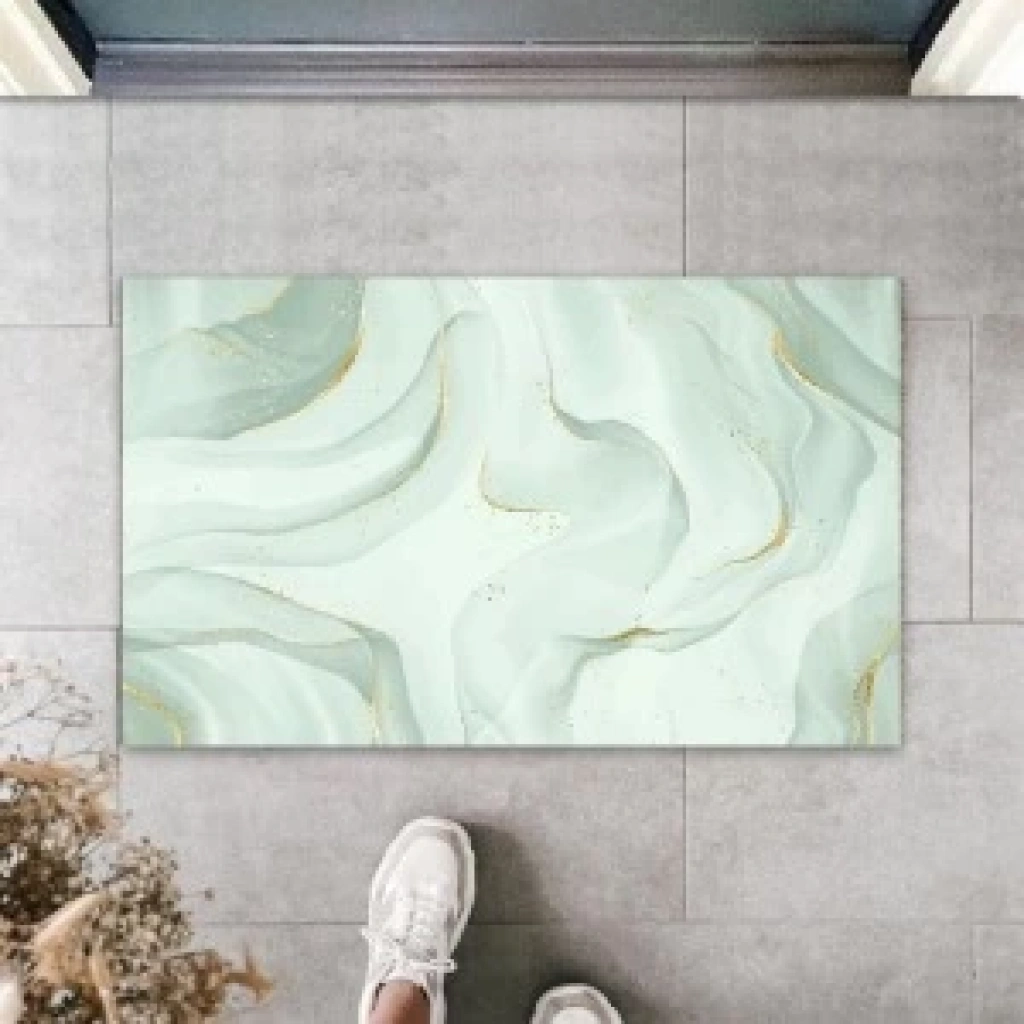 Dekoratif Dijital Modern Dalgalı Turkuaz Yeşil Kapı Paspası Dış Mekan Paspas K-3124