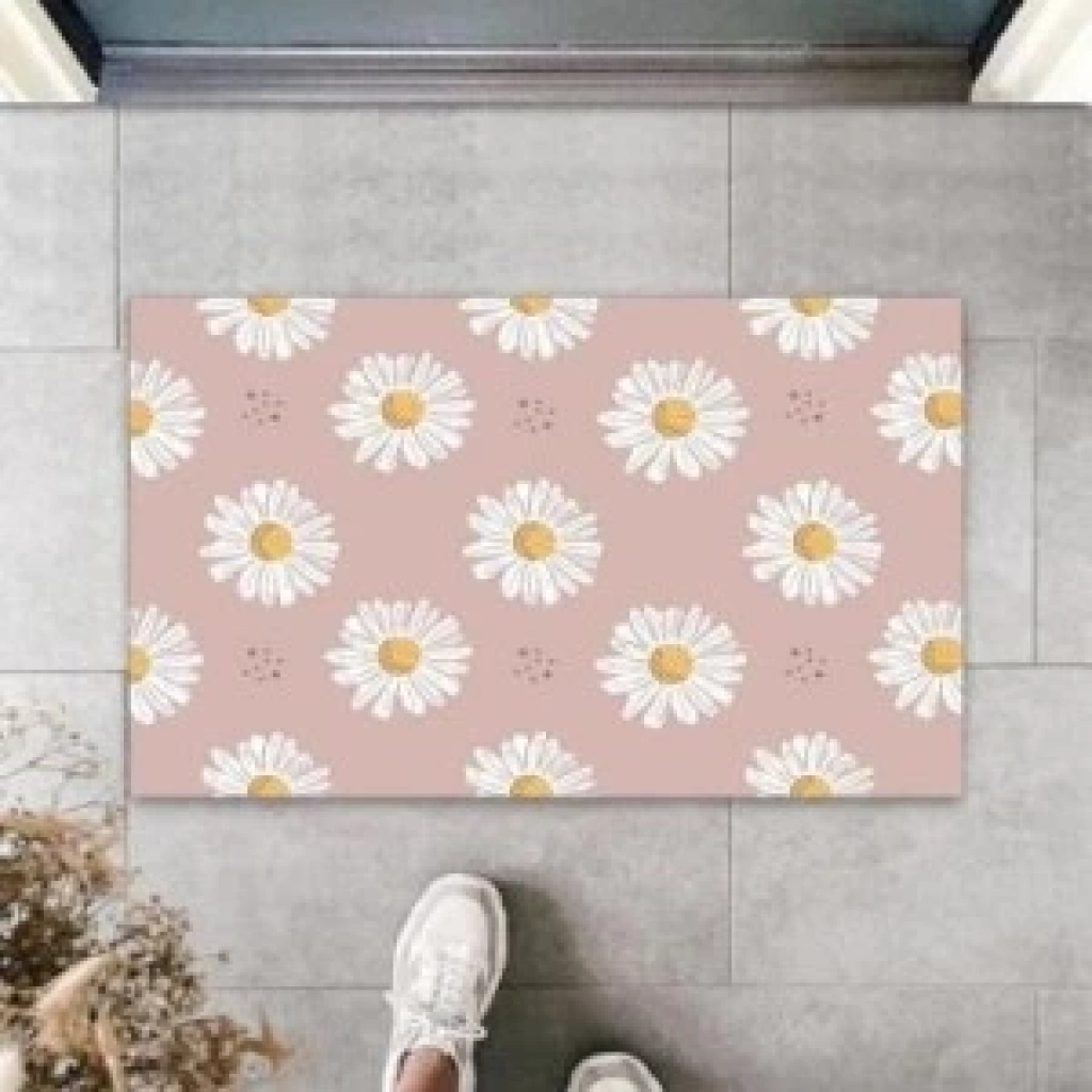 Dekoratif Dijital Papatya Lila Kapı Paspası Dış Mekan Paspas K-3104