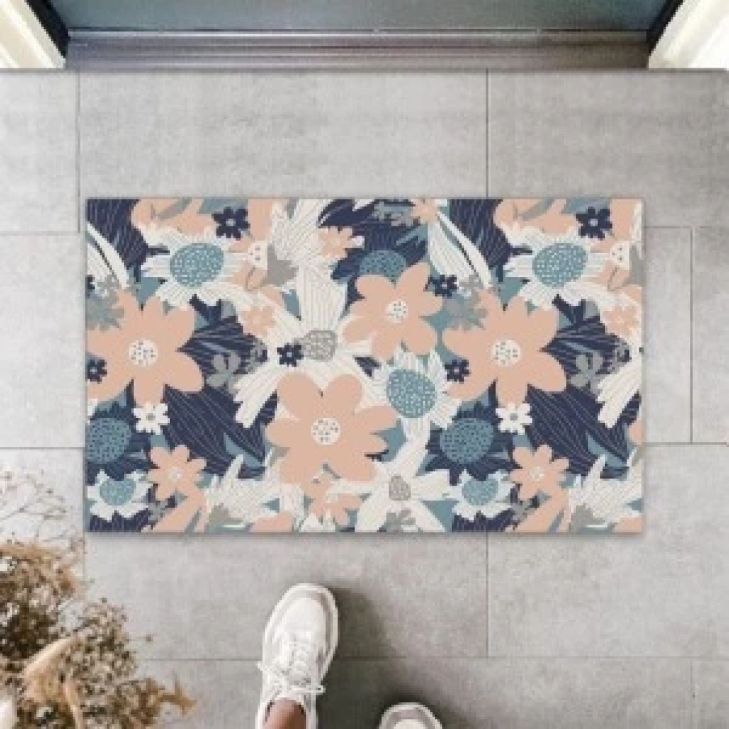 Dekoratif Dijital Soft Büyük Çiçekler Pudra Kapı Paspası Dış Mekan Paspas K-3108