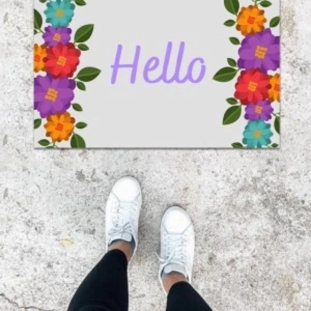 Kapı Önü Paspası Kişiye Özel Yazı Yazılır Koko Model Çiçek Şerit Pk-1526