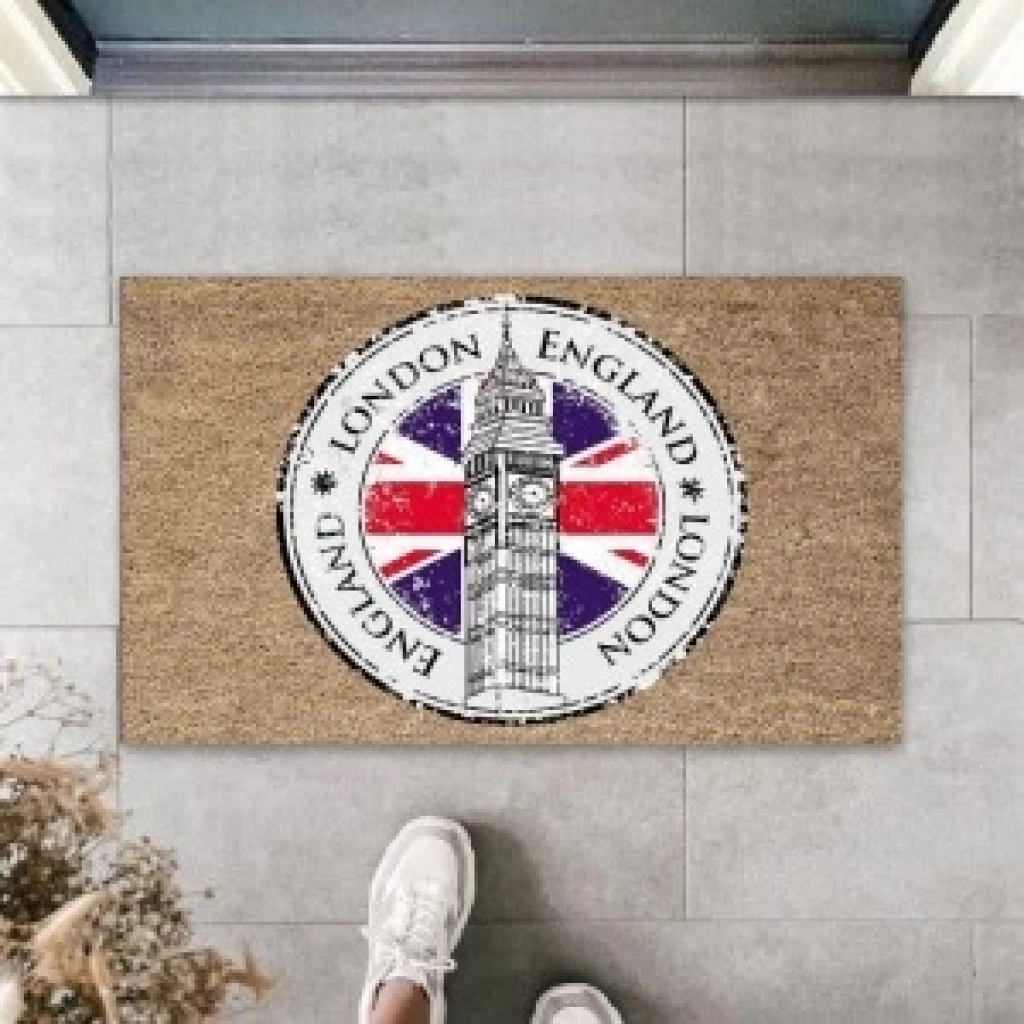 Dijital Baskı Bej London Saat Kulesi Paspas K-3150