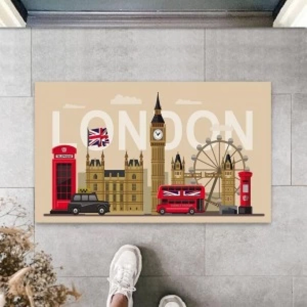 Dijital Baskı Bej London Temalı Paspas K-3020