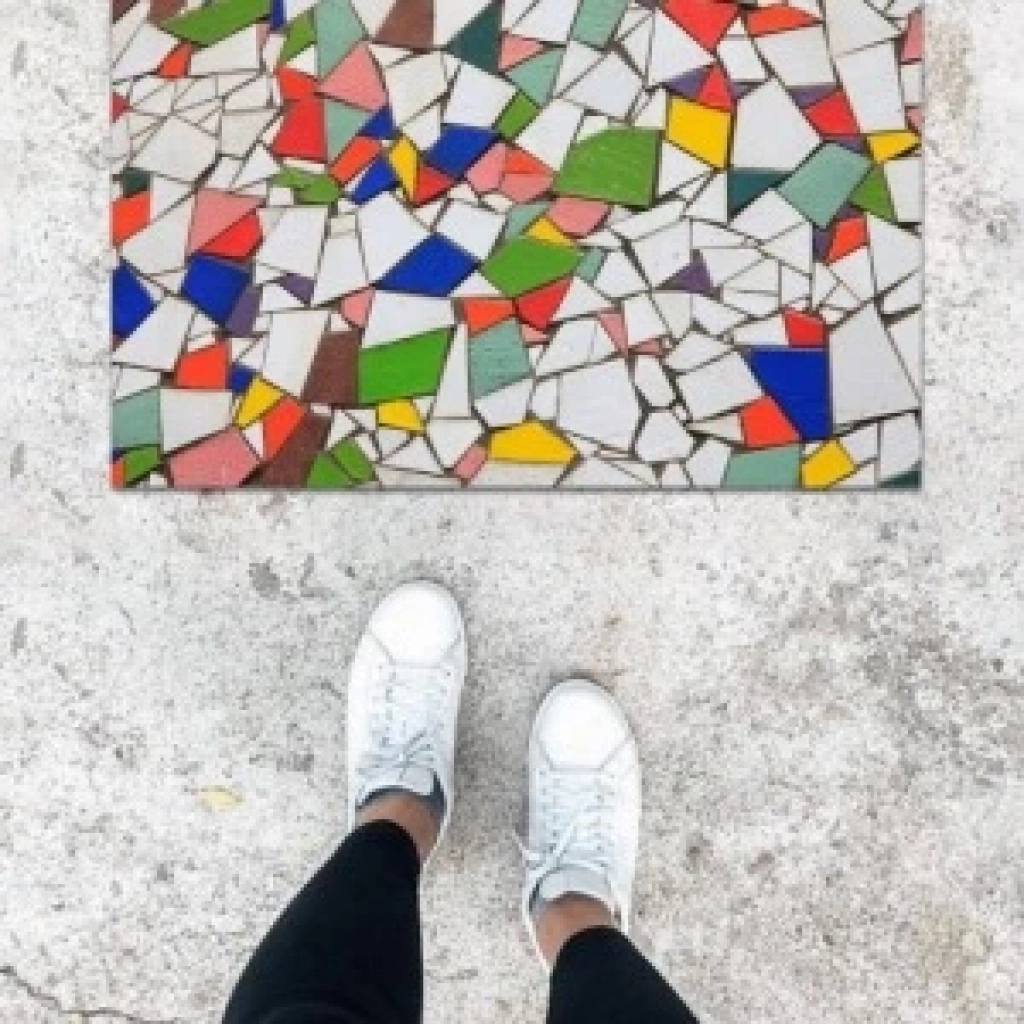 Dijital Baskı Beyaz Kırık Mozaik Desen Kapı Önü Paspası K-1073