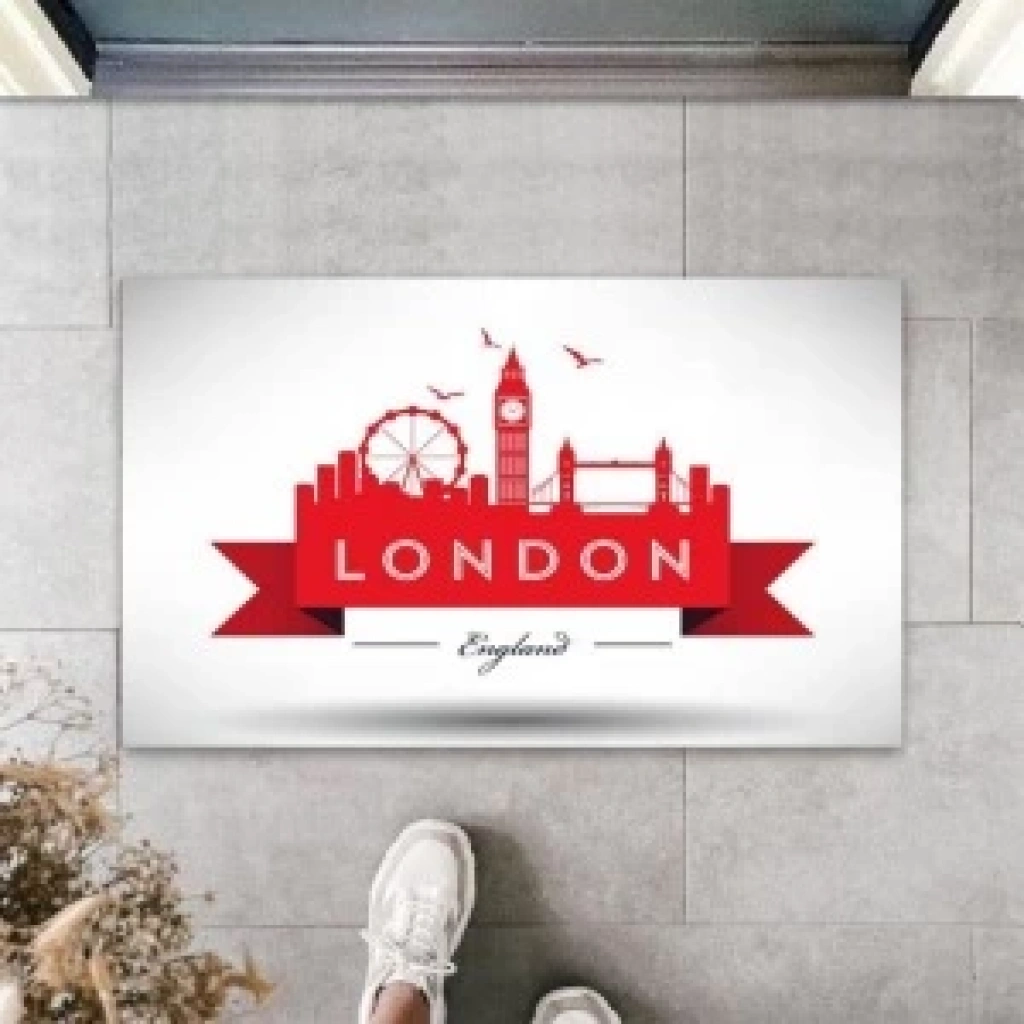 Dijital Baskı Beyaz London Kapı Paspası