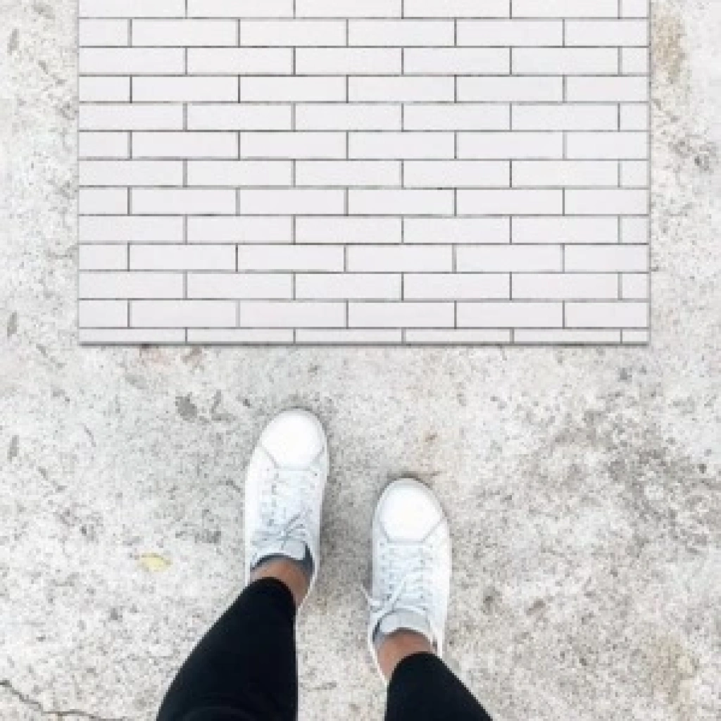 Dijital Baskı Beyaz Taş Duvar Desen Kapı Önü Paspası K-1061