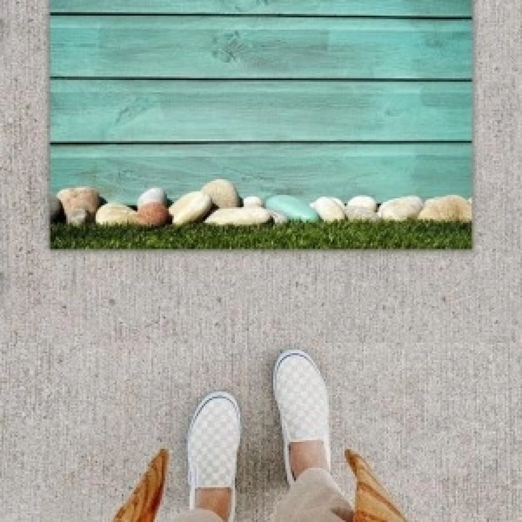 Dijital Baskı Dekoratif Ahşap Duvar Mavi Kapı Önü Paspası K-1268