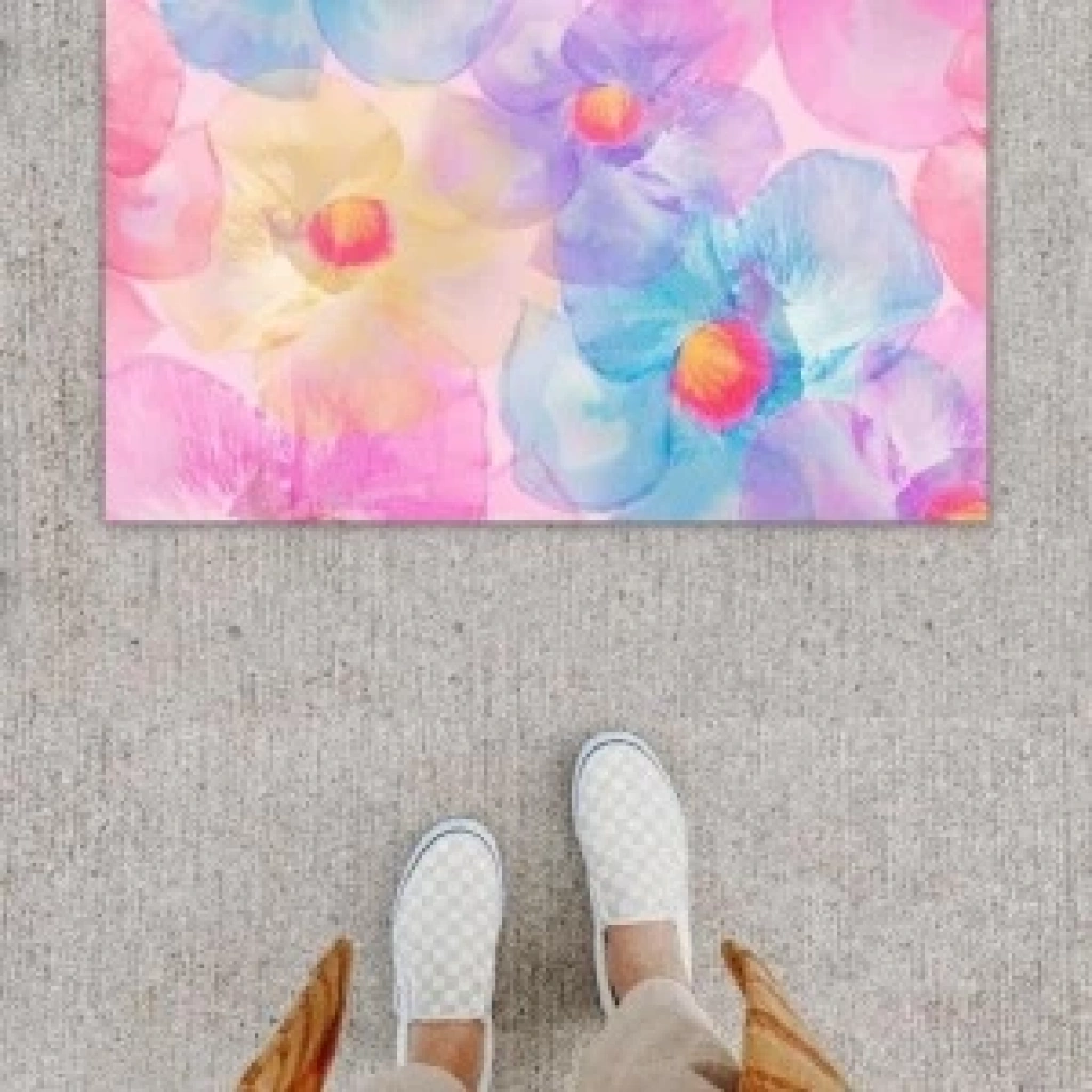 Dijital Baskı Dekoratif Çiçek Ebruli Kapı Önü Paspası K-1261