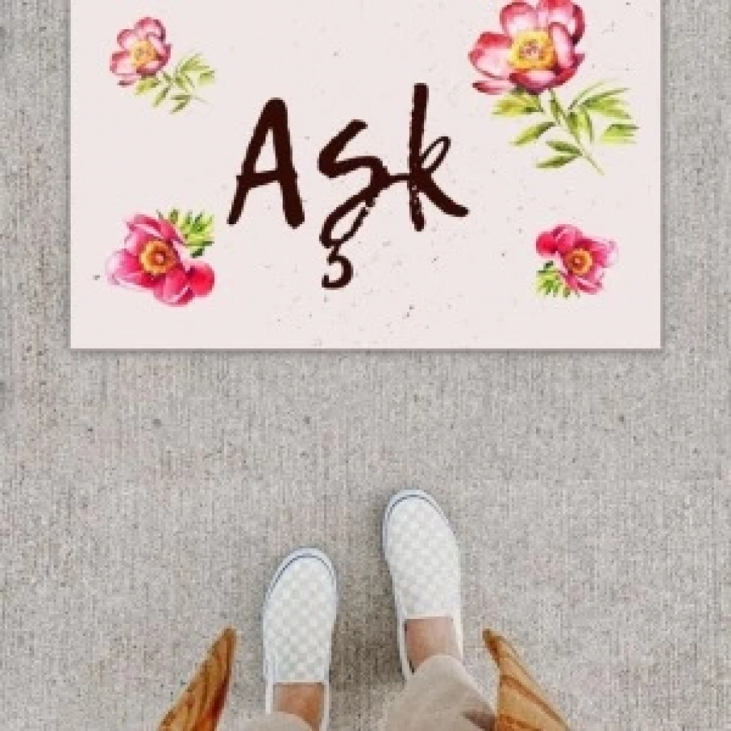 Kapı Önü Paspası Kişiye Özel Yazı Yazılır Koko Model Kalp Çiçek Desenli Pk-1515