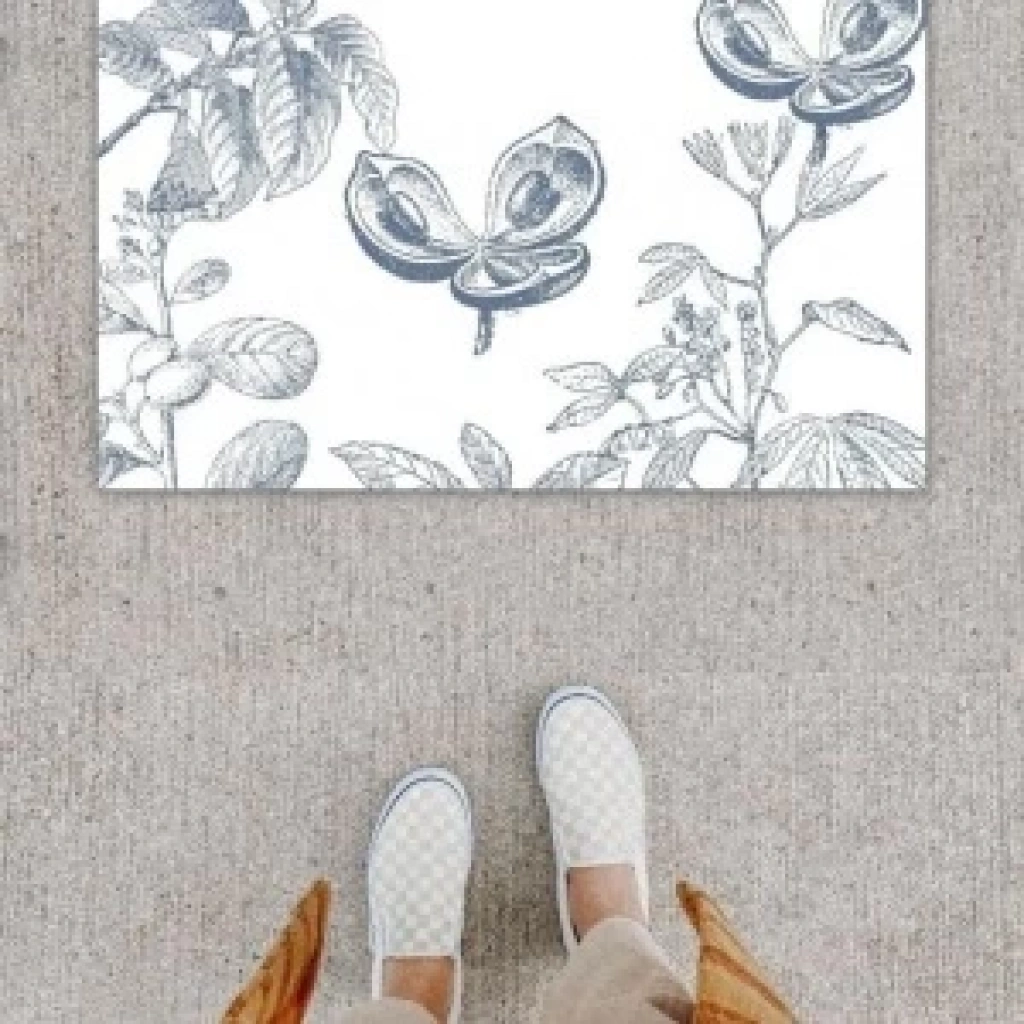 Dijital Baskı Dekoratif Çiçek Krem Kapı Önü Paspası K-1271