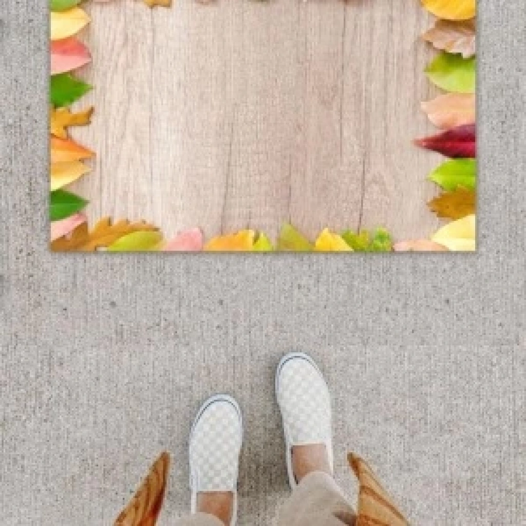 Kapı Önü Paspası Özel Tasarım Koko Model Yapraklar Hoşgeldiniz Pk-1528