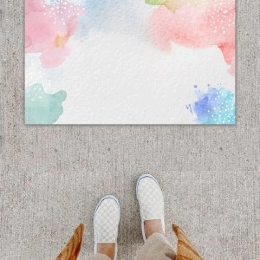 Dijital Baskı Dekoratif Düz Ebruli Kapı Önü Paspası K-1221